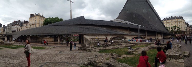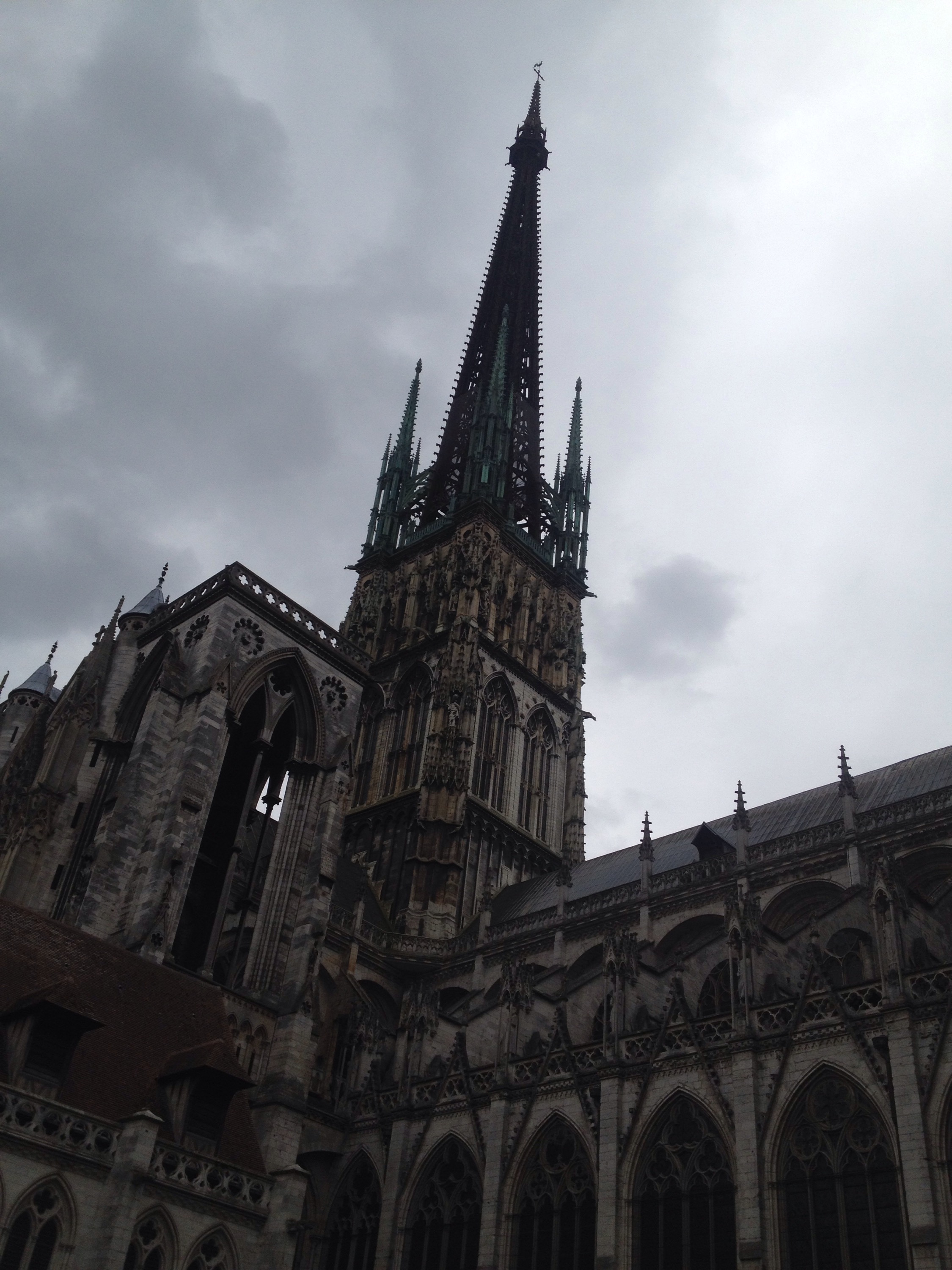 Rouen has so much more to offer than I would have thought. We saw about three gorgeous gothic cathedrals and the Joan of Arc church as well. The Joan of Arc one was a bit odd – weirdly shaped and huge – it juts out of the city like a black sheep. But I found it intriguing nonetheless.