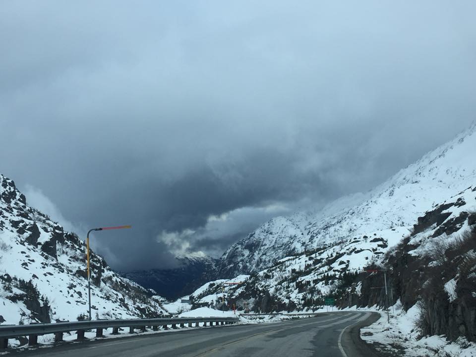 The next bump in the road, so to speak, came in Montana. You see, again I hadn’t factored in that we were driving to Alaska in APRIL. So, though the route I curated was pretty amazing, we encountered a lot of snow. A LOT of snow. When we were about to cross the border into Canada for the VERY FIRST TIME for the both of us, we came upon a road that hadn’t been plowed and was covered in about five feet of snow. Yeah. Fun.
